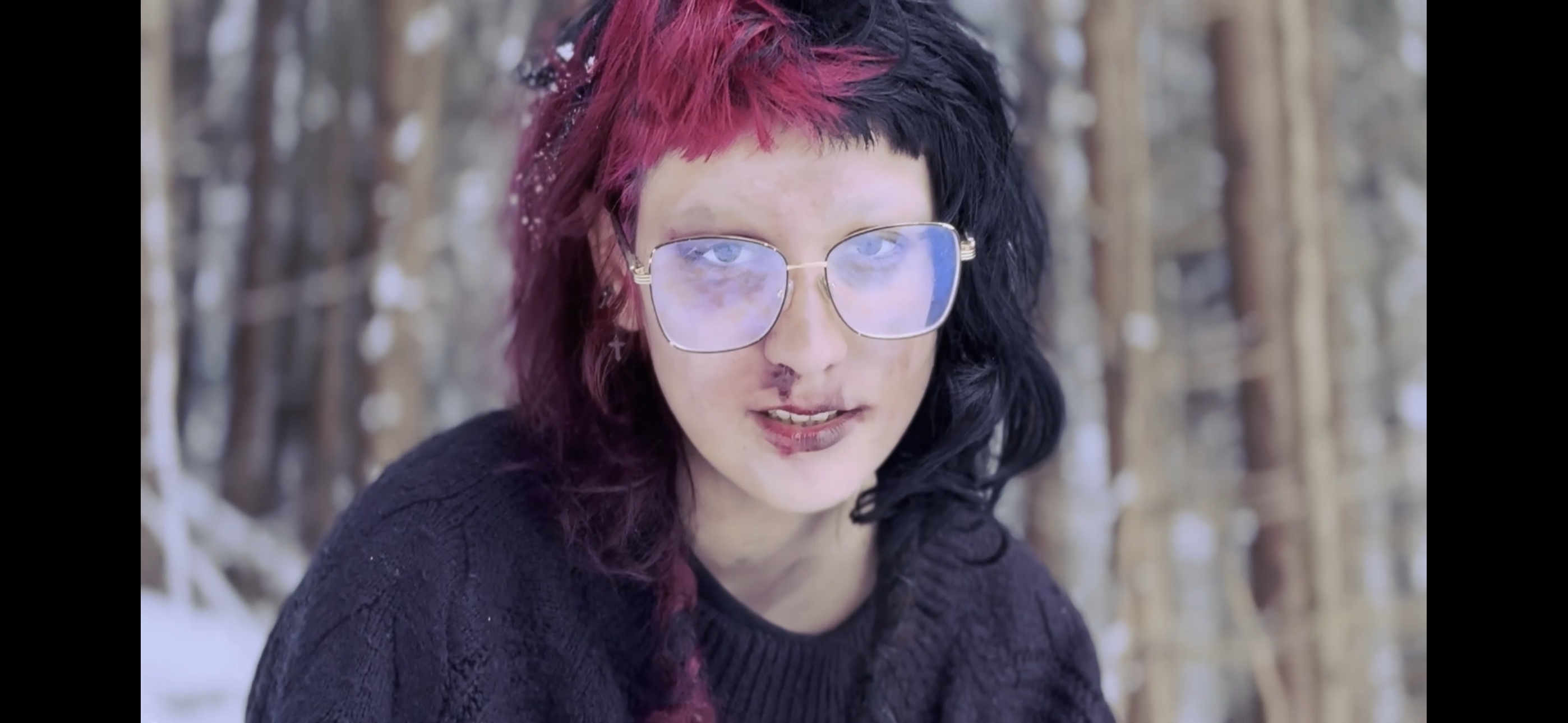 One thing I wish I would have done differently is the way the protagonist is introduced. While I appreciate “keeping the mystery”, I wish we would have revealed a bit more information about the character, either through explicit means such as a very short ‘context’ scene, or throught more implicit, mise en scene elements such as props around her room and maybe in the snow in the forest.