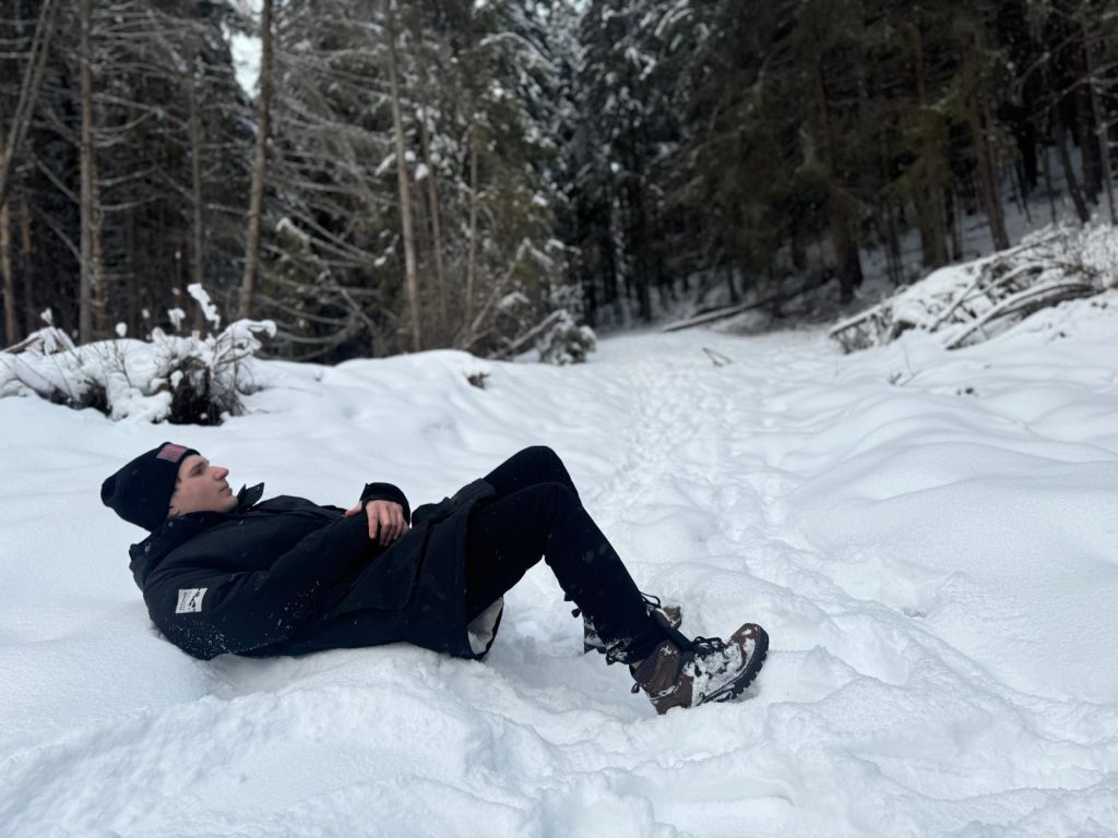 Our first setback came with the tarot cards. The night before, we had left them near the fireplace to dry off after they’d gotten wet and crusty in the snow, and in the morning, during our cleaning, we somehow lost them – what a mystical coincidence! I got sent back to find them. I spent about an hour searching every nuke and cranny of the cabin, while Mark and Carla filmed additional footage in the forest like running away etc. With limited daylight in early January, we were under high pressure to keep moving.