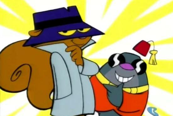Two Stupid Dogs was also paired with newer episodes of the Hanna Barbera cartoon, Secret Agent Squirrel. This “Two shows in one” concept would be continued with Dial M For Monkey and Evil Con Carne.