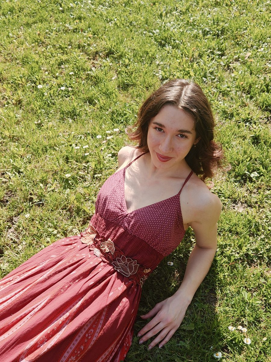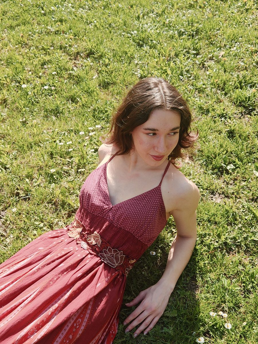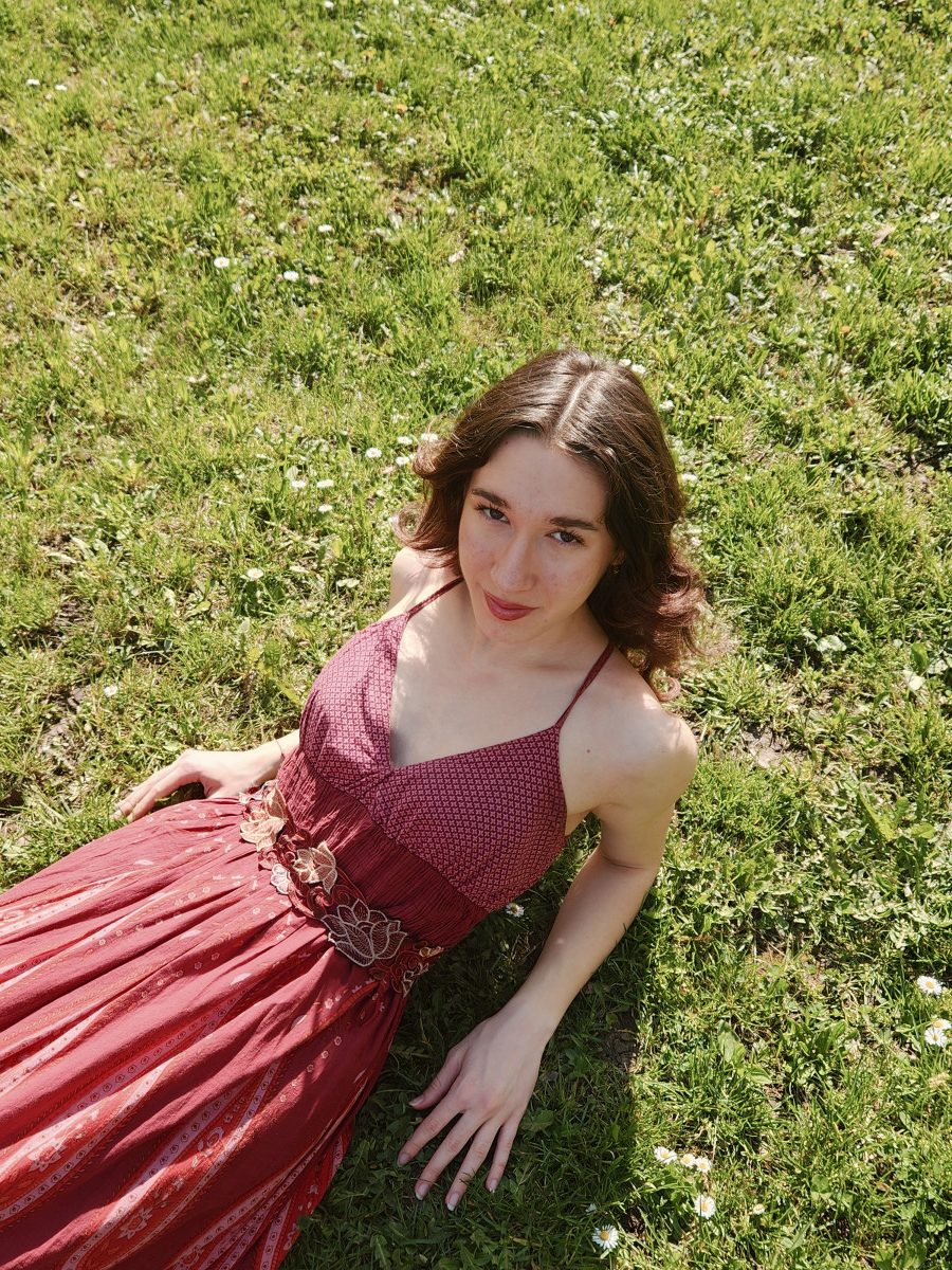 Saturday morning, I made sure to charge my camera so I would have enough battery to shoot. I also charged my phone in case I wanted to take photos with it as well (or just for behind the scenes), it has a good camera. Later that day I went out with the girls, and on the way back I stopped to buy a bouquet of red flower’s bouquet and then by Jon’s house, from which we went to my house, near where we would be taking the pictures. At 5pm we were at the park, and began taking photos on the grass, from a high-angle, like some of the inspo pics I’ve chosen.