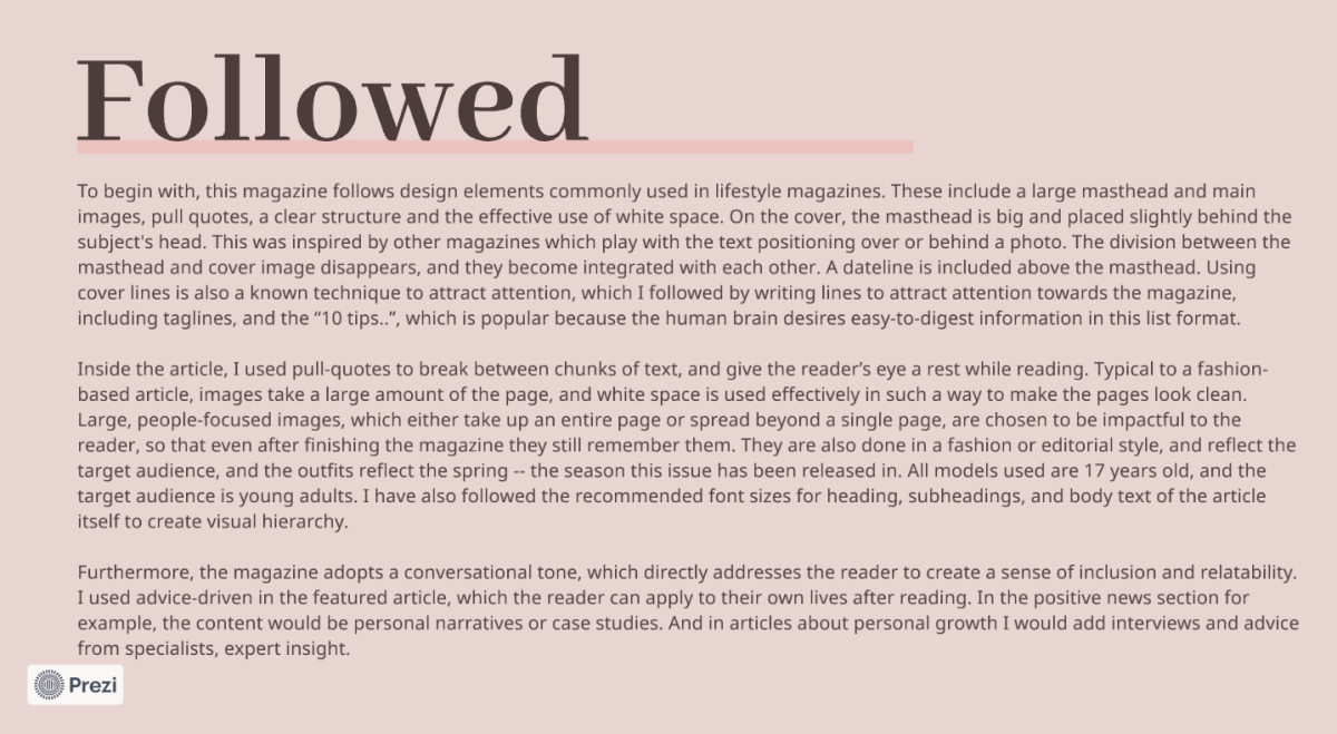 Because I couldn't just start making the presentation without any content, I made a draft, firstly structuring the essay and then actually writing it. The next step was making the final slides and stickers to use. I really liked how I could incorporate a slide in the other.