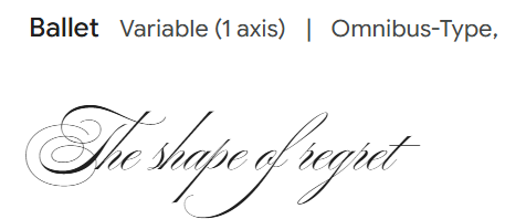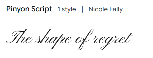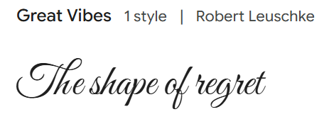 From here we decided to look on Google Fonts and choose one with a similar vibe and calligraphy. We wanted a dramatic looking text with thin lining. This is what Luca found: