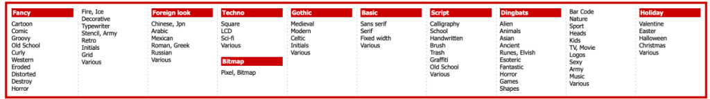 Later, I looked at some websites that offer varieties of fonts, first website I found was this one: https://www.dafont.com. One thing I enjoyed about the website was that it offered fonts based on categories: