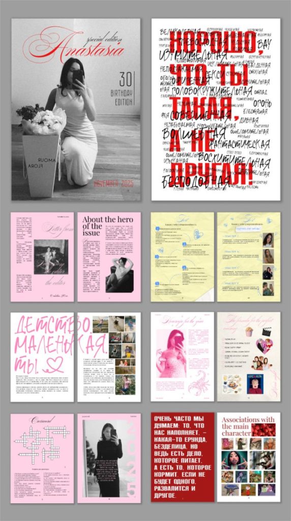 In most of these we can notice that the fonts play a crucial role in the design, each font matches the colour pallet of the overall magazine or photography. In some cases, for titles, fonts may even differ from one word to another