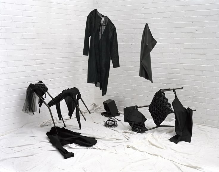 On the front cover the whole background will be black, perhaps a long curtain, the main element will be the hanging clothes with lights displayed on them. I want to find “flowy” clothes and dangly accessories hanging from them. I want to make the garments look as alive as possible without a model wearing them. The front and back cover are inspired by my article “When fabric forgets the body”.