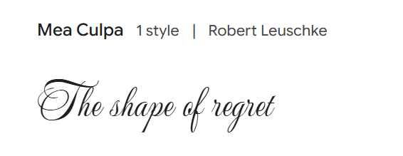 From this we looked on the Google Fonts website at similar fonts with a more dramatic effect. We looked at fonts with a fancy feel that had formal calligraphy.