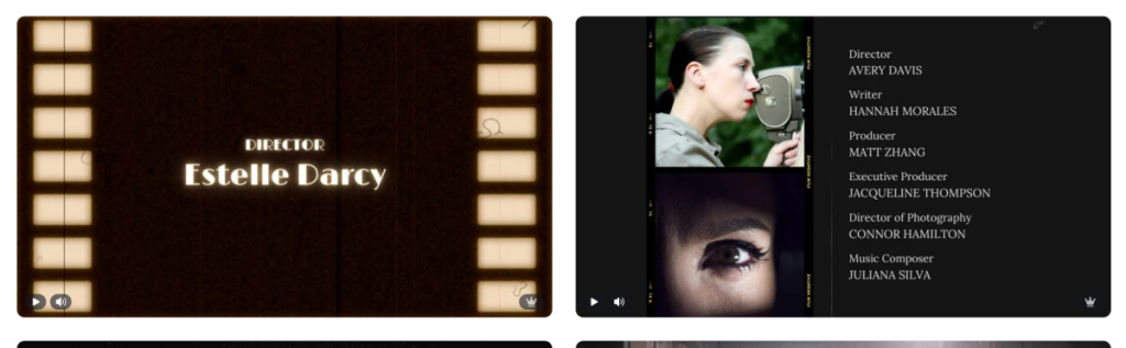 For the credits, I decided to look into the templates that were available on Canva to get a better idea of what my options were. I knew I wanted a high contrast between the writing and the clip in the background, and I was also firmly convinced that the traditional rolling credits with a black background were not what I envisioned.